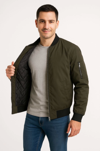 Erkek Şehir Stili Haki İçi Astarlı Fermuarlı Bomber Mont Ceket