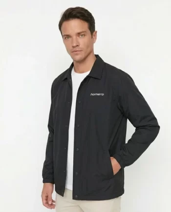 Erkek Şehir Stili Siyah Yağmur İtici İç Astarlı Çıtçıtlı İç Cepli Dış Cepli Mevsimlik Ceket