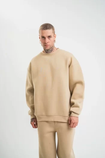 Kadın Günlük Stil Bej Uzun Kol Bisiklet Yaka Basic Sweatshirt