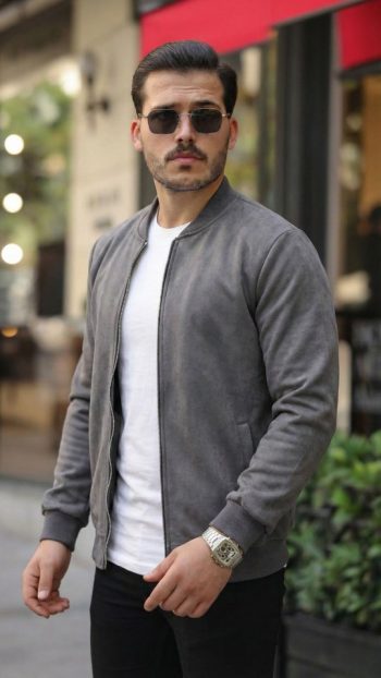 Süet Erkek Günlük Şıklık Scuba Kumaş Bomber Hırka