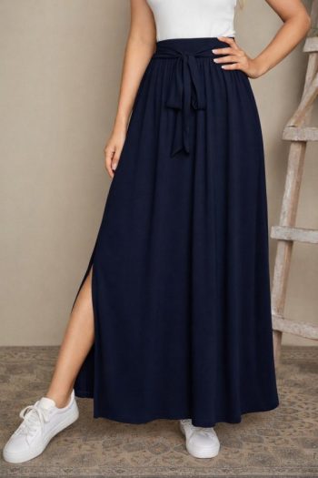 - Kadın Yüksek Bel Bei Kuşaklı Yandan Yırtmaçlı Uzun Sandy Etek