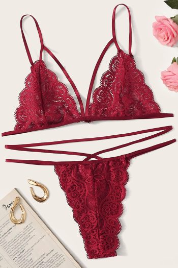 - Kadın Bordo Dantelli Çapraz Sütyen Takımı