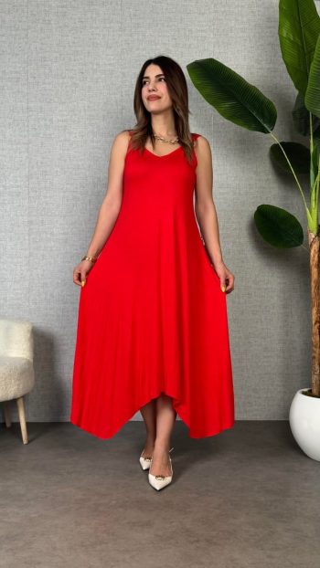 Kadın Zarif Duruş Uzun Kollu Balıkçı Yaka Salaş Kusa Akrilik Elbise