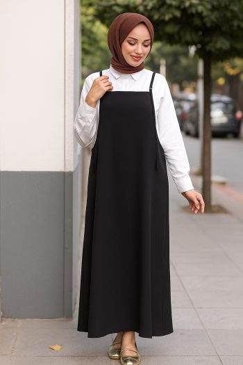 Kadın Zarif Duruş Siyah Basic Ayarlanabilir Askılı Jile Elbise