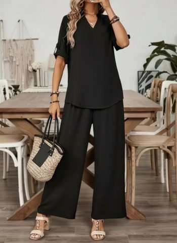 - Aerobin Kadın Zarif Dokunuş Kısa Kollu V Yakalı Bluz Ve Pantolon İkili Takım