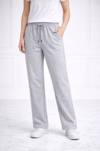 - Kadın Gri Düz Paça Beli Lastikli İpli Günlük Spor Rahat Fit Eşofman Altı