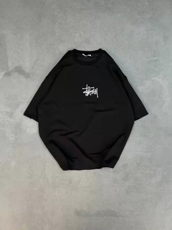 Baskılı Unisex Günlük Stil Siyah Eskitme Efektli Oversize Tişört