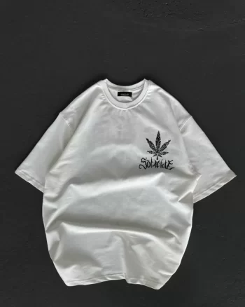 Grafik Baskılı Unisex Günlük Stil Beyaz Kristal Doku Oversize Tişört