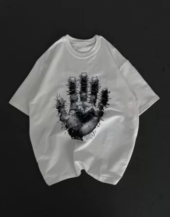 Baskılı Unisex Beyaz Kar Beyazı Retro Oversize Tişört