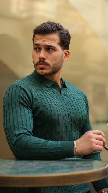 - Erkek Modern Stil Saç örgü Desen Uzun Kollu Triko