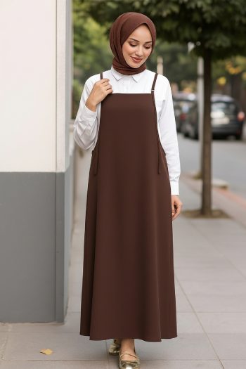 - Kadın Zarif Duruş Acı Kahverengi Basic Ayarlanabilir Askılı Jile Elbise