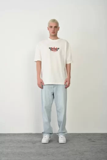 - Baskılı Unisex Günlük Stil Beyaz Bisiklet Yaka Oversize Tişört