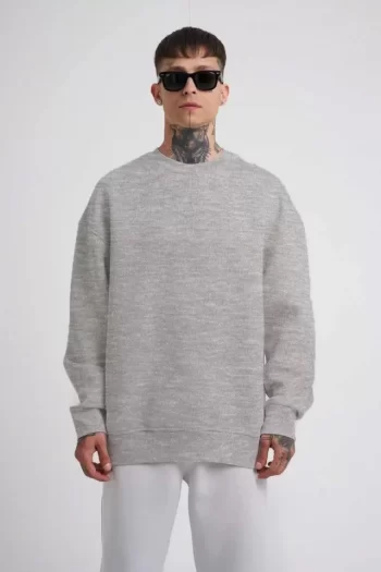 - Düz Dokulu Erkek Günlük Stil Gri Bisiklet Yaka Rahat Kesim Sweatshirt