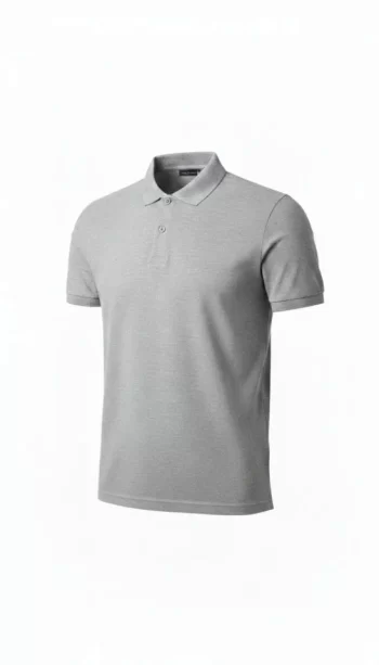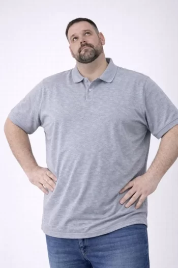 Erkek Gri Pike Kumaş Düğmeli Yaka Battal Büyük Beden Günlük Kısa Kol Tişört