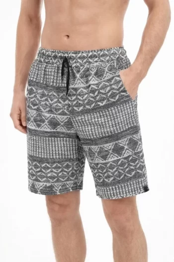 Erkek Etnik Desenli Dokuma Şort Lastikli Bel Bağcıklı Cepli Yazlık – Gri