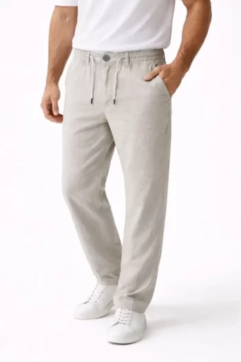 Erkek Keten Cepli Pantolon Lastikli Bel Bağcıklı Önden Fermuarlı – Gri