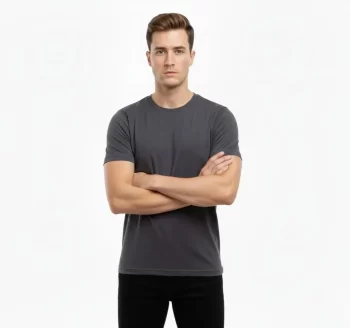 Erkek Füme Bisiklet Yaka Slim Fit Dar Kesim Likralı Günlük Basic Body Tişört