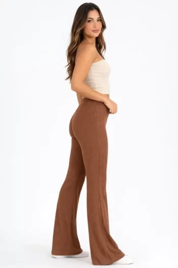 Kadın Kahverengi Fitilli Kaşkorse İspanyol Paça Tayt Yüksek Bel Esnek Günlük Rahat Pantolon