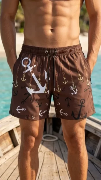 Deniz Şortu Fermuarlı Cepli File Astarlı Hızlı Kuruyan Premium – Kahverengi