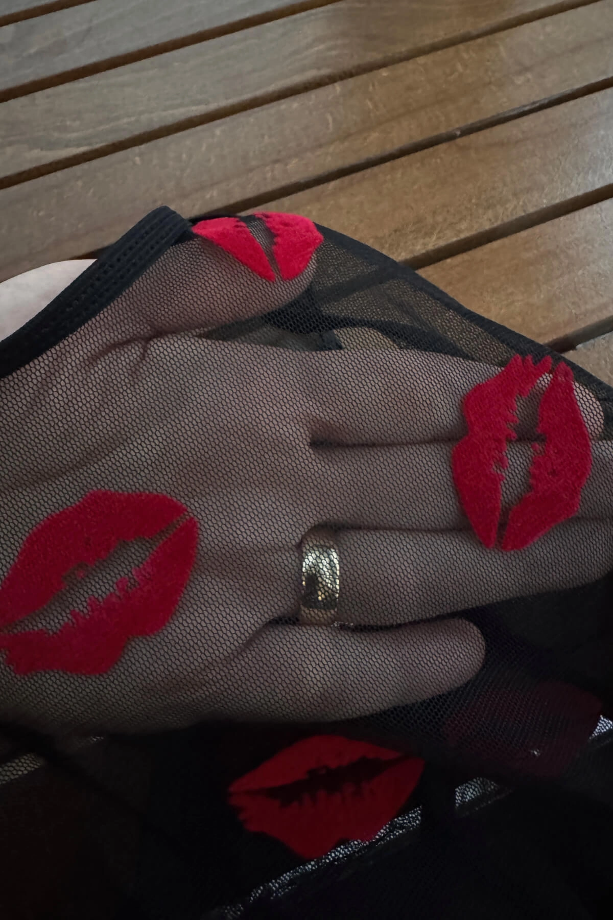 Öpücük Desenli Transparan Siyah Fantazi İç Giyim TM1385