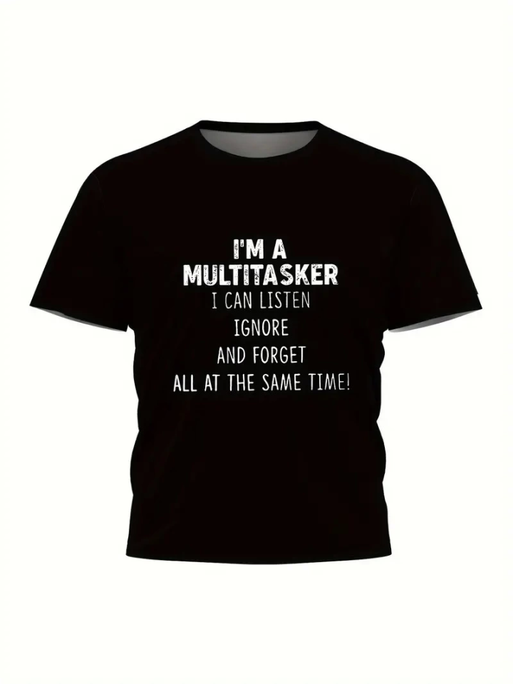 Baskılı Oversize Bisiklet Yaka T-shirt – Siyah