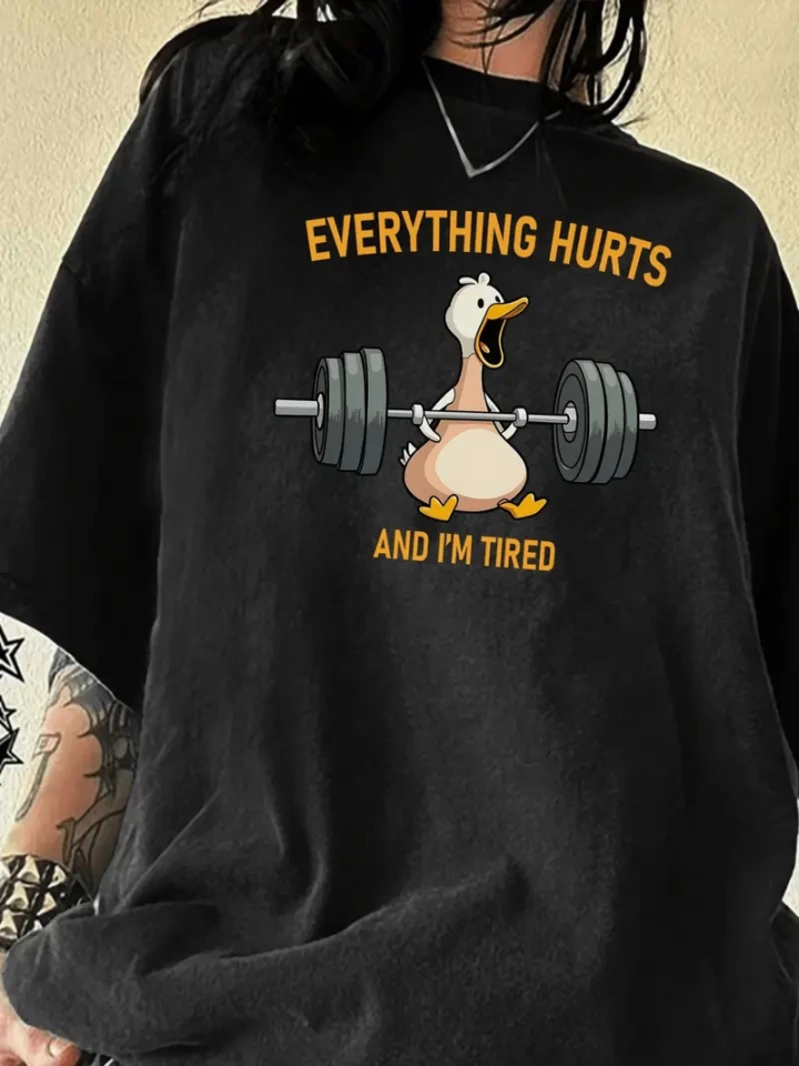 Baskılı Kadın Salaş Stil Siyah Oversize Bisiklet Yaka Tişört