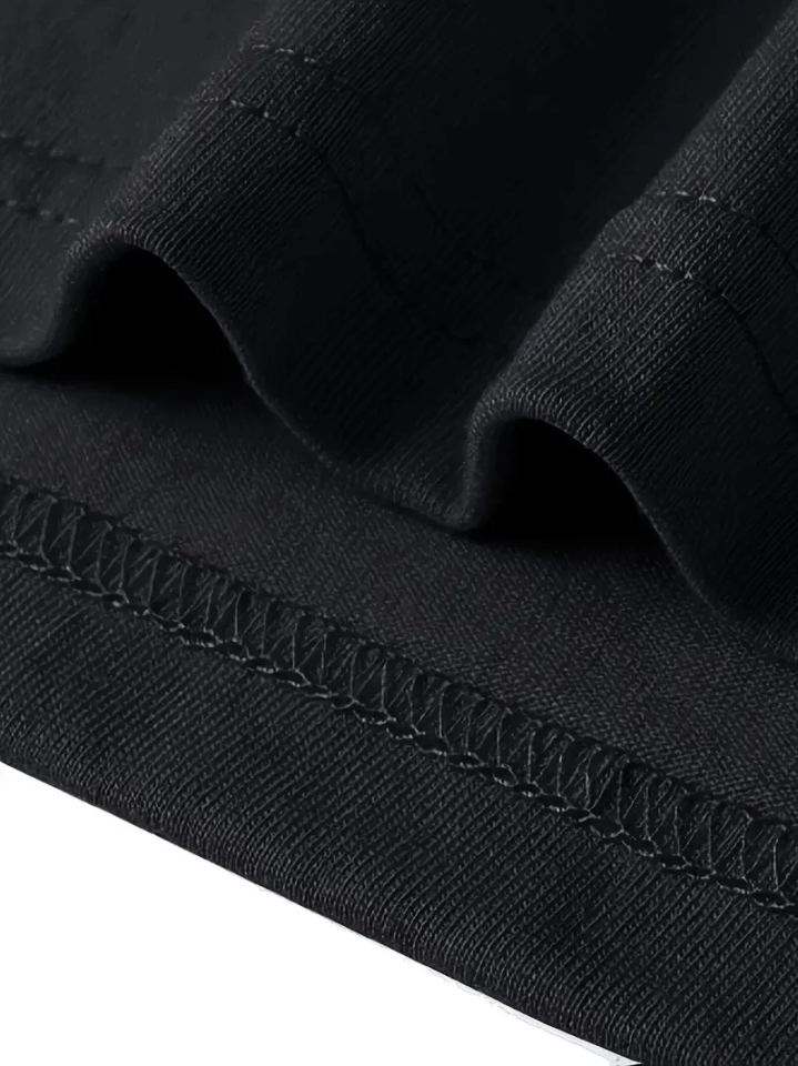 Baskılı Oversize Bisiklet Yaka T-shirt – Siyah