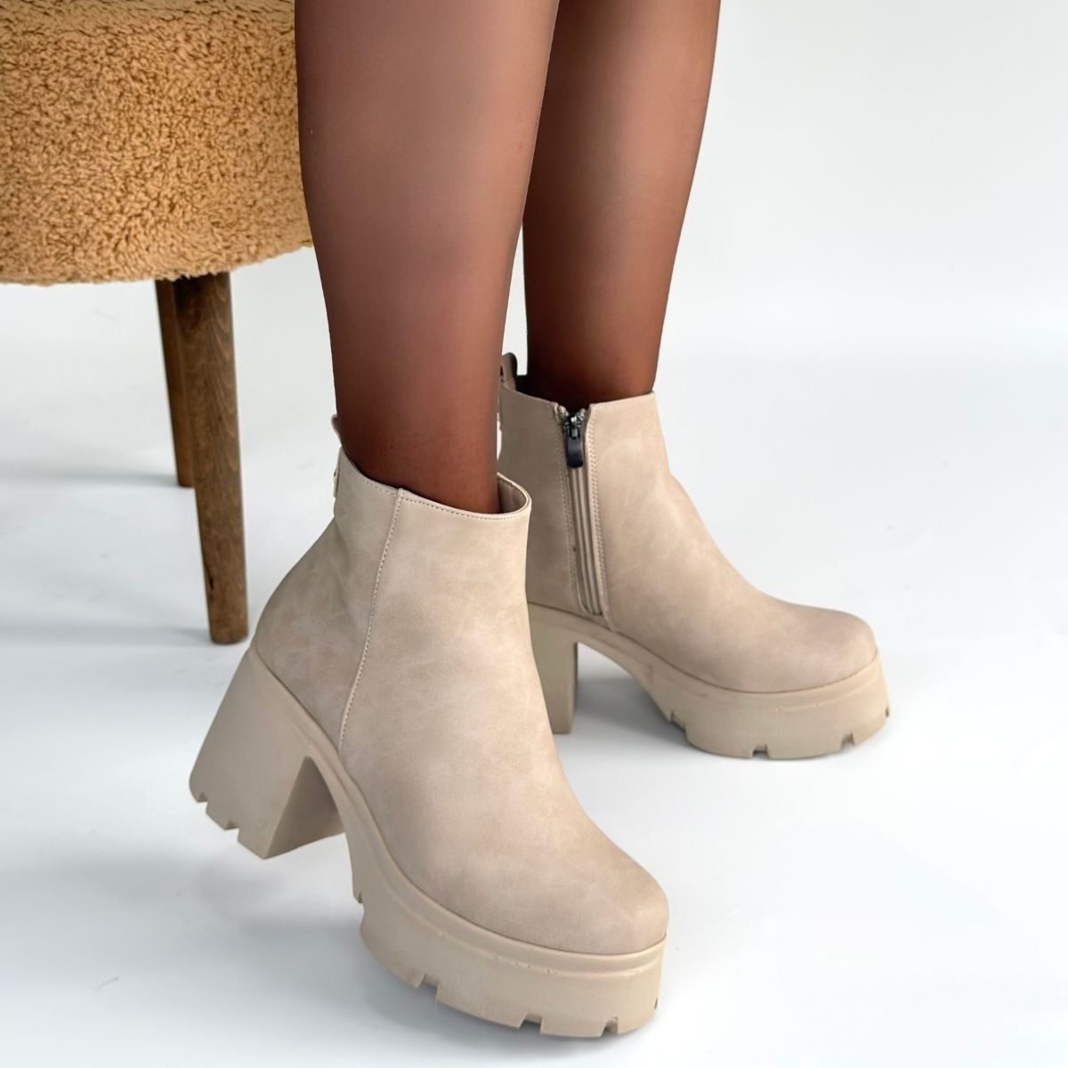 Nubuk Kadın Konforlu Adım Belay Bej Topuklu Bot