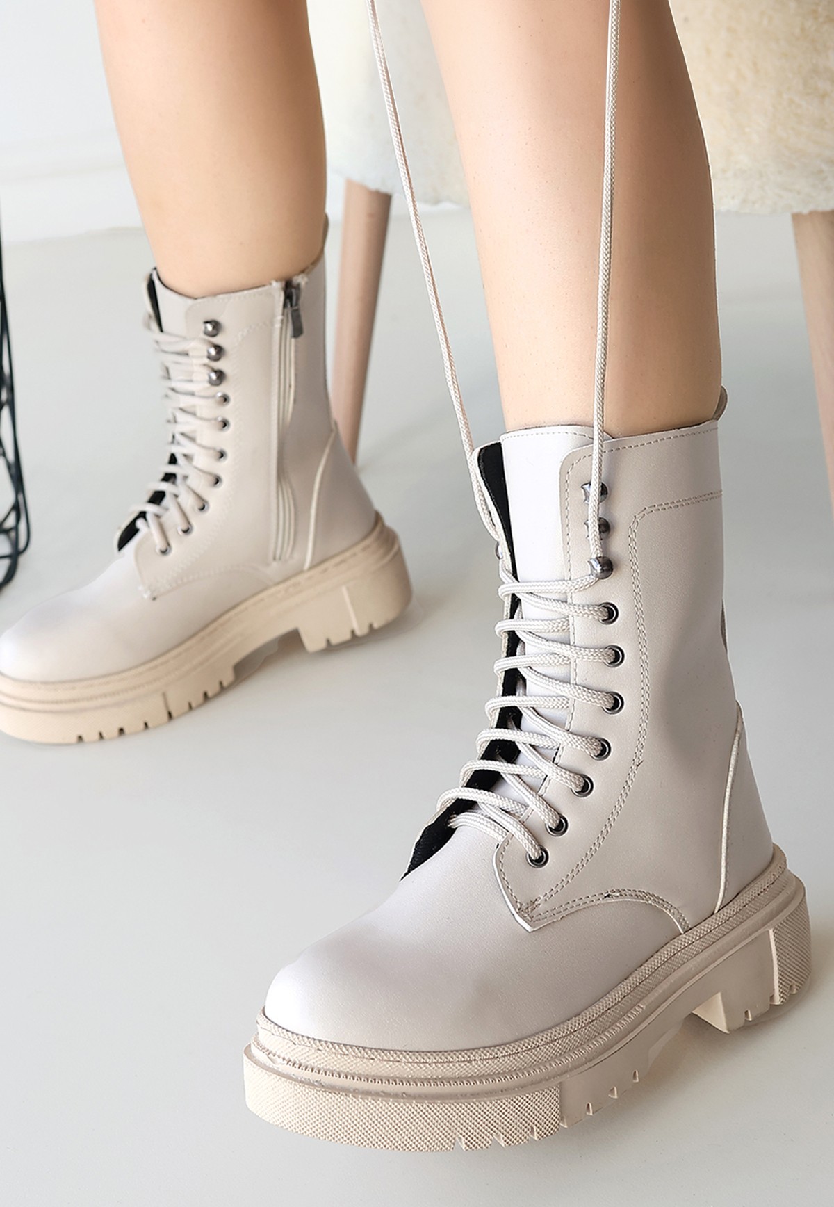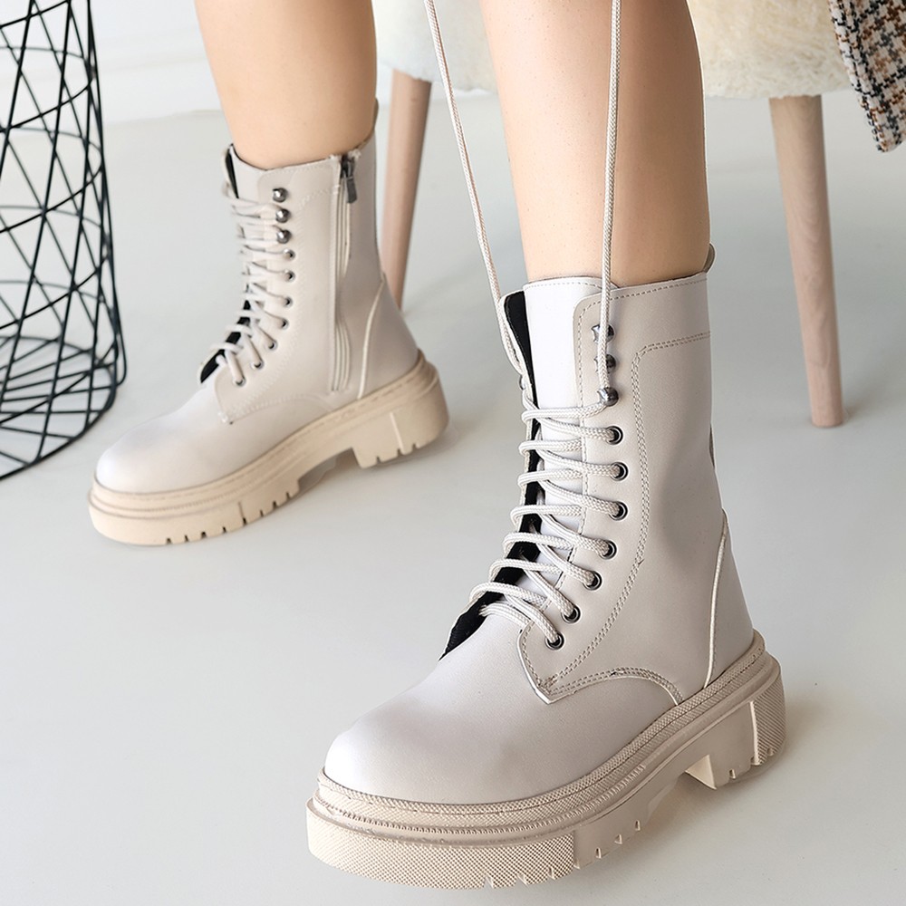 Caxa Bej Cilt Bağcıklı Bot