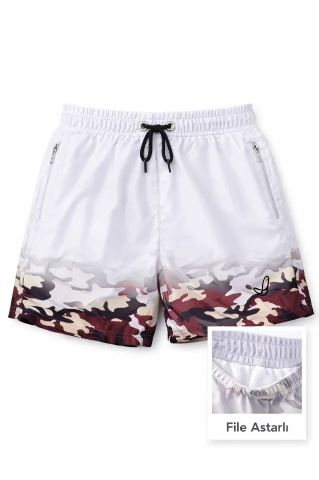 Deniz Şortu Fermuarlı Cepli File Astarlı Hızlı Kuruyan Premium – Beyaz