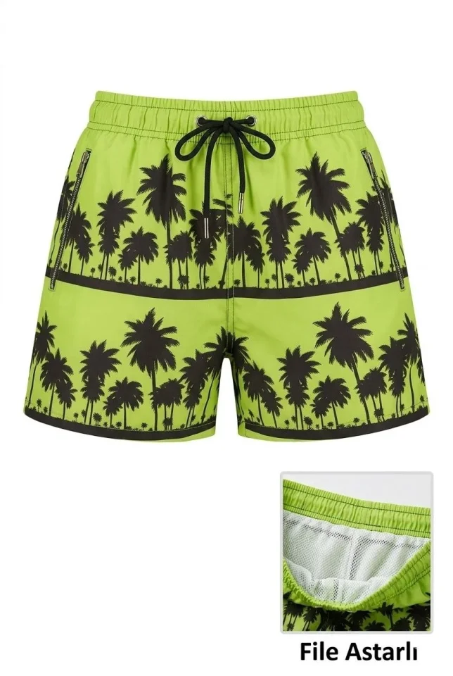 Deniz Şortu Fermuarlı Cepli File Astarlı Hızlı Kuruyan Premium - Neon Yeşili