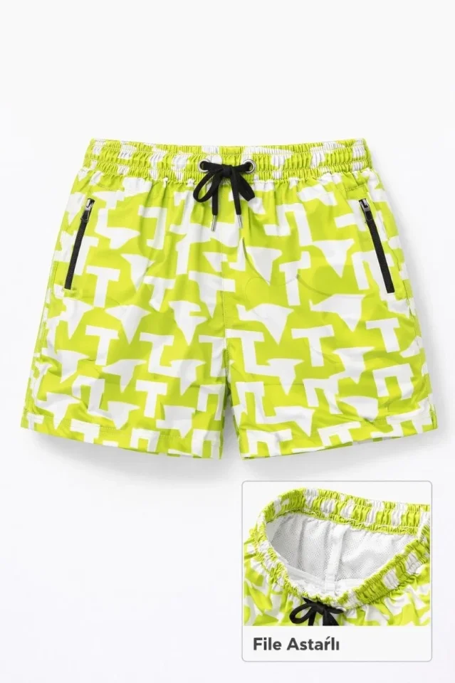 Deniz Şortu Fermuarlı Cepli File Astarlı Hızlı Kuruyan Premium – Neon Yeşili