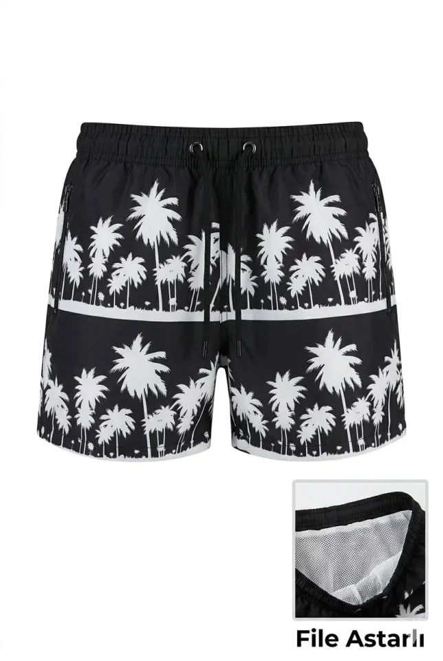 Deniz Şortu Fermuarlı Cepli File Astarlı Hızlı Kuruyan Premium - Siyah
