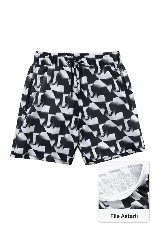 Deniz Şortu Fermuarlı Cepli File Astarlı Hızlı Kuruyan Premium - Siyah