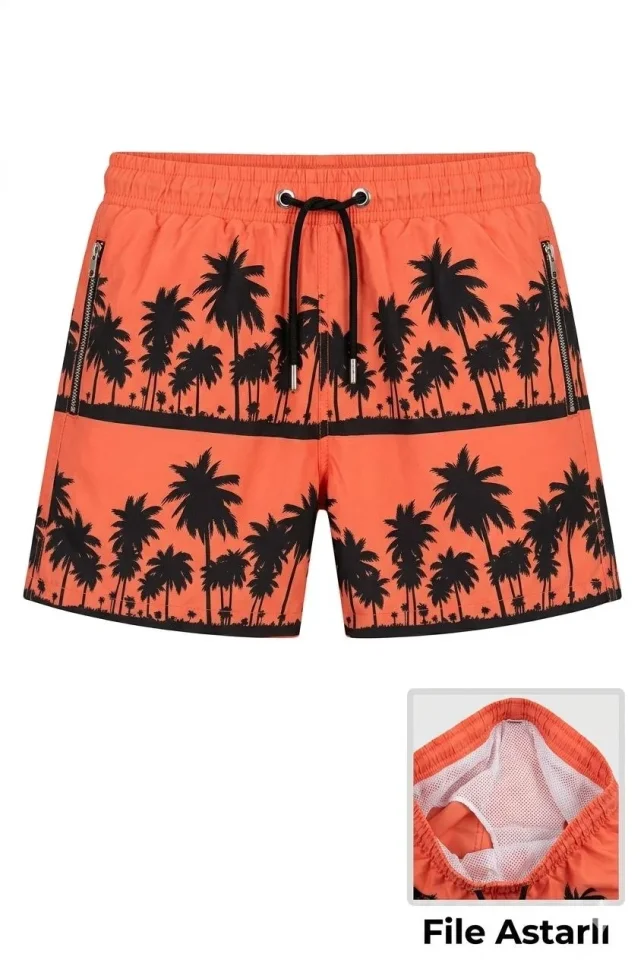 Deniz Şortu Fermuarlı Cepli File Astarlı Hızlı Kuruyan Premium – Turuncu