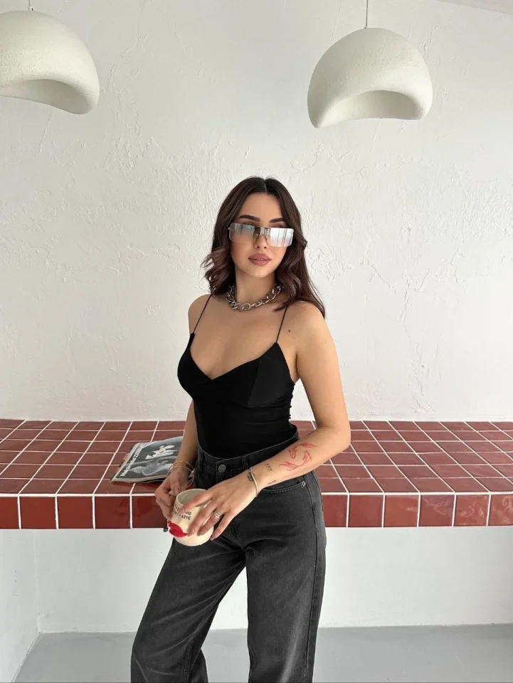 “Derin Dekolte Askılı Body Sırt Dekolteli Şık Kolsuz Yazlık Bodysuit – Siyah” için ilk yorum yapan siz olun
