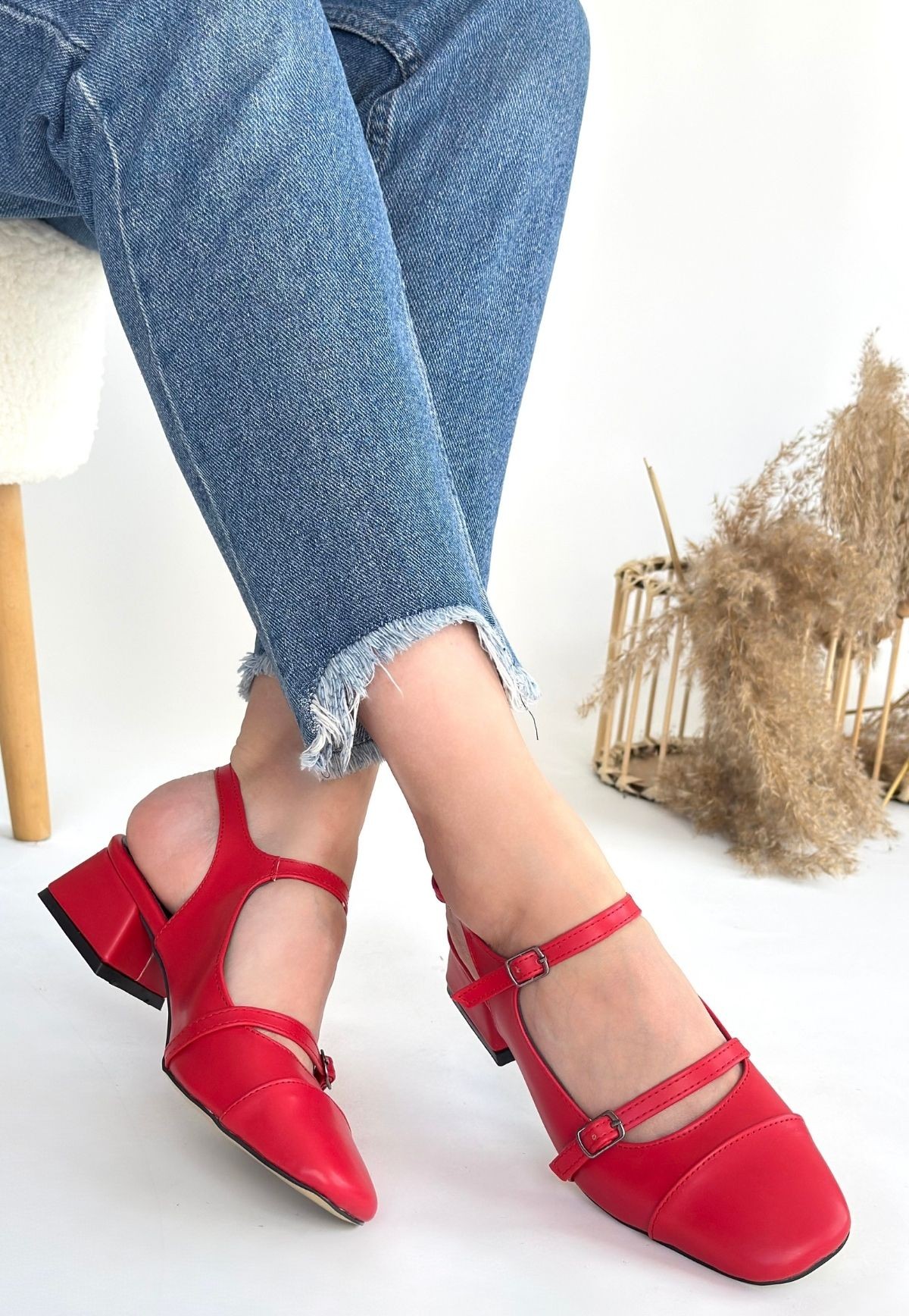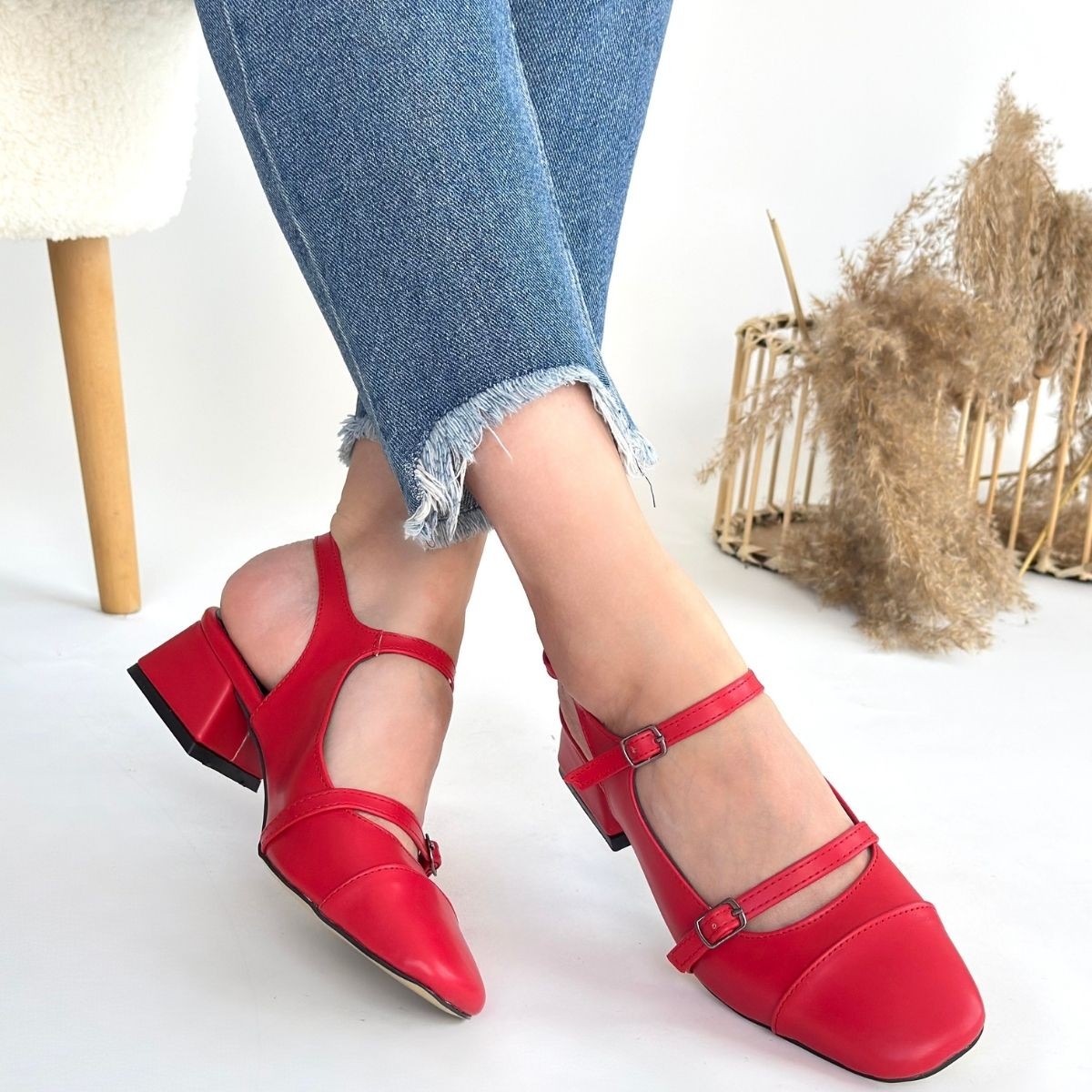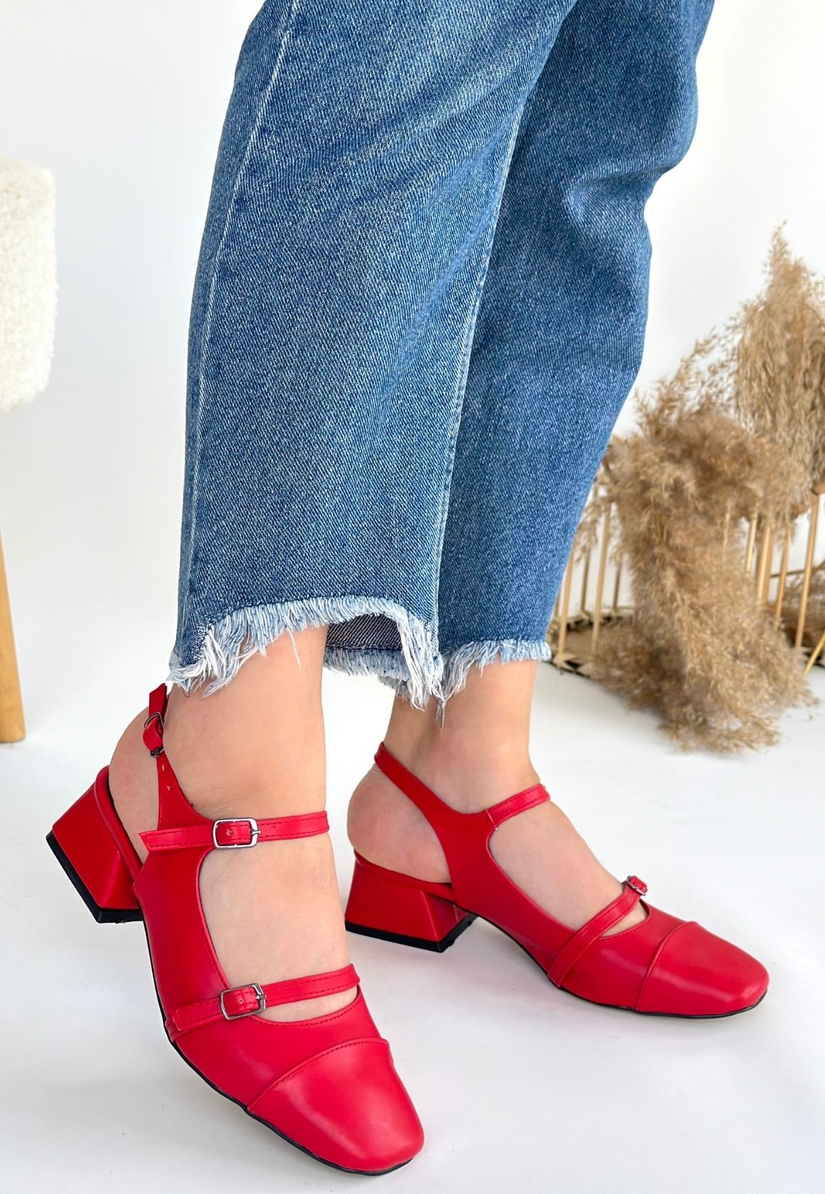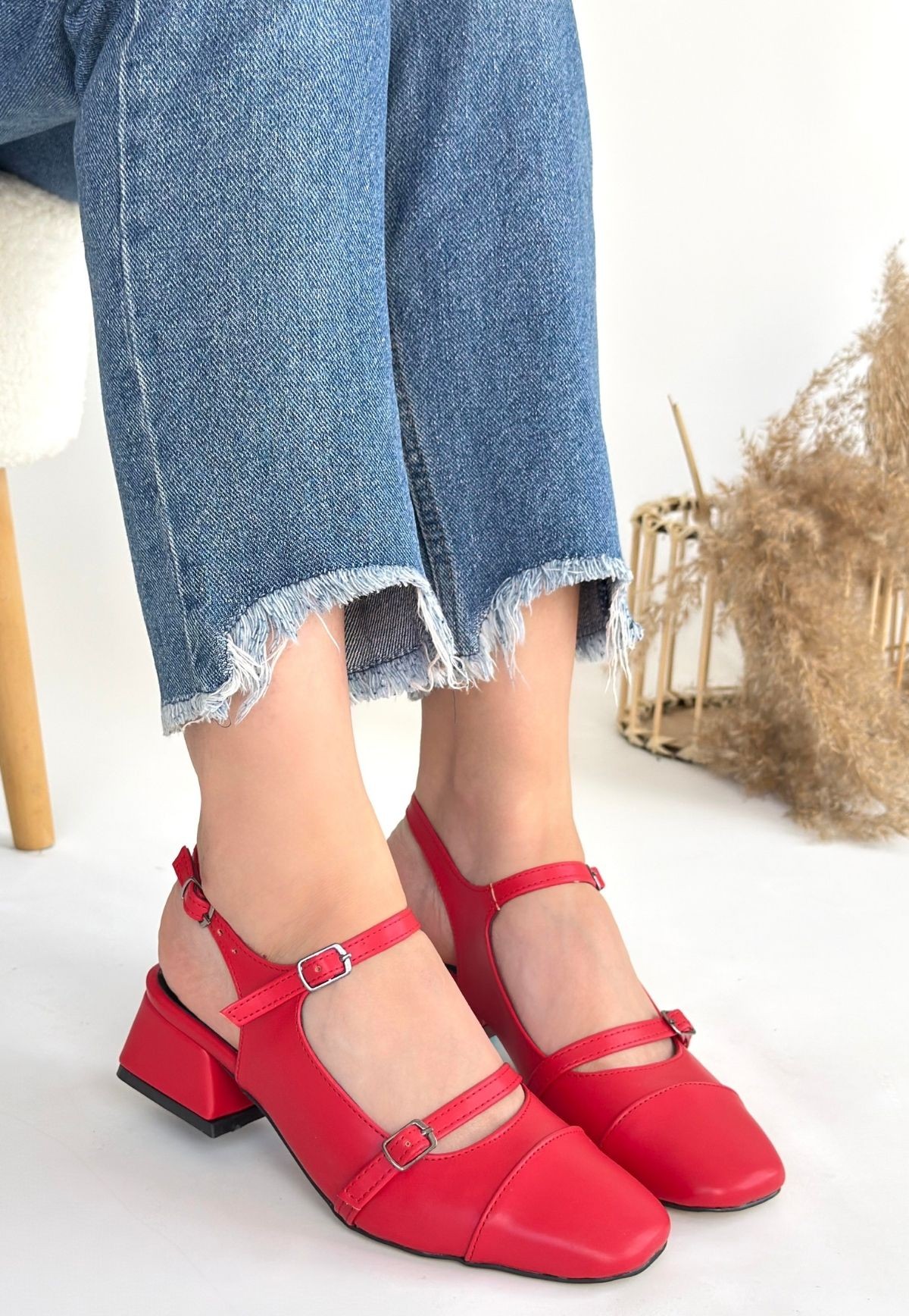 Cilt Kadın Konforlu Adım Doran Kırmızı Topuklu Ayakkabı