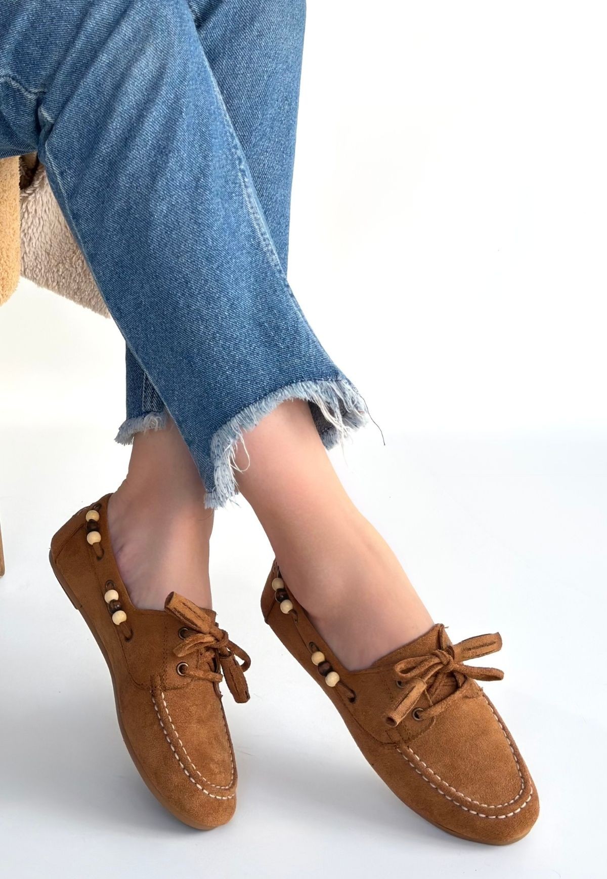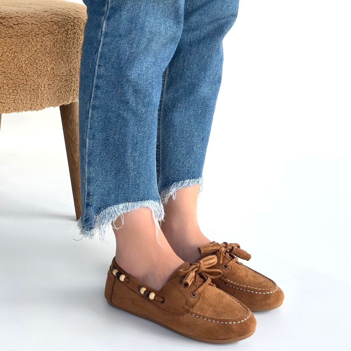 Süet Kadın Modern Stil Elora Taba Babet