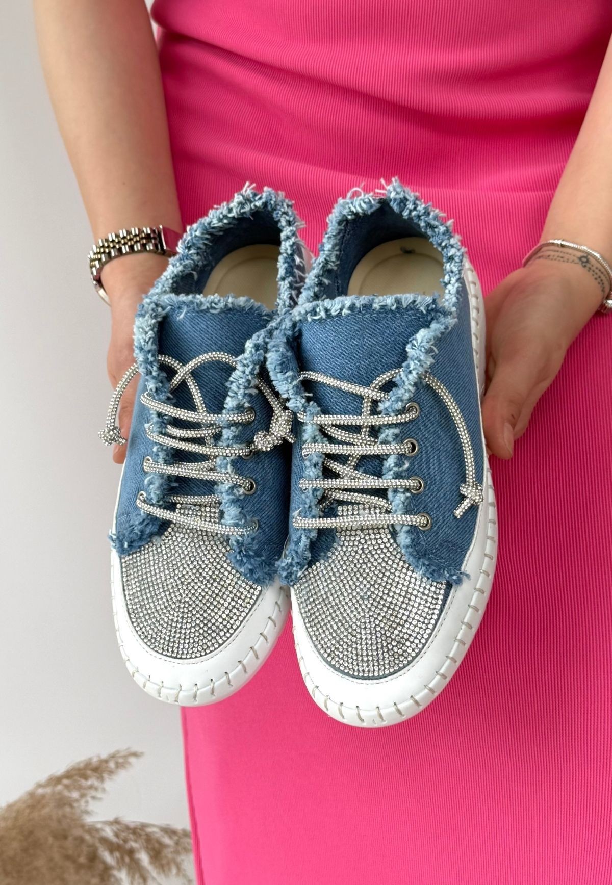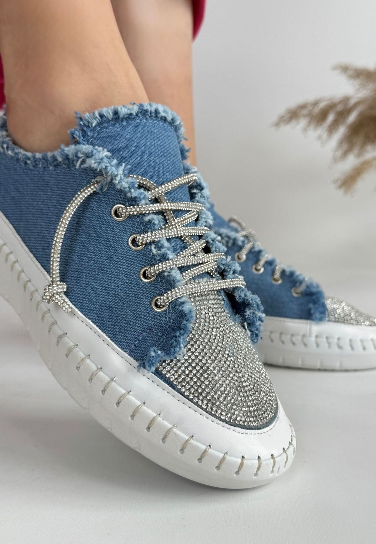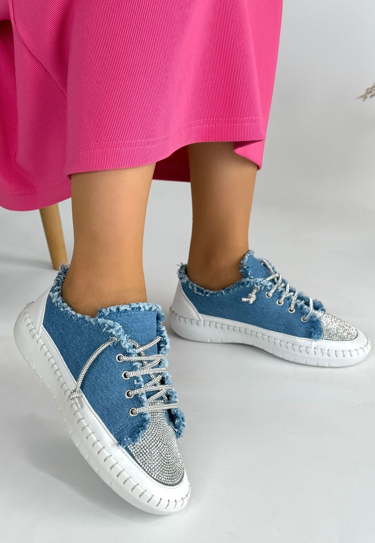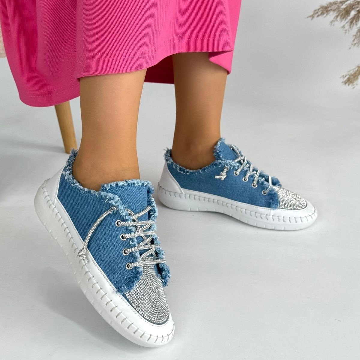 Kadın Konforlu Adım Enber Mavi Kot Bağcıklı Spor Ayakkabı