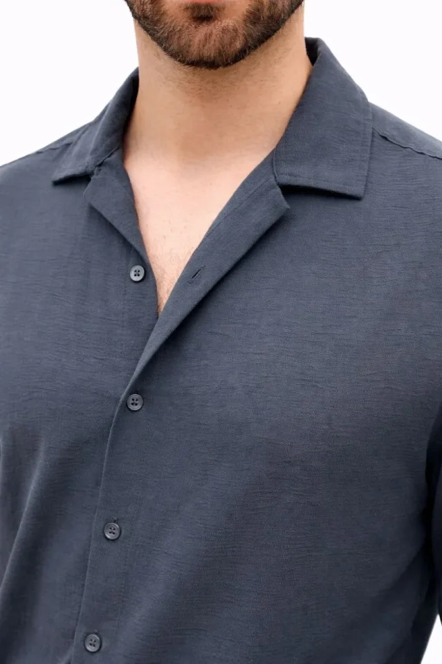 Erkek Aerobin Kumaş Oversize 4 Mevsim Uzun Kollu Rahat Kalıp Gömlek – Füme