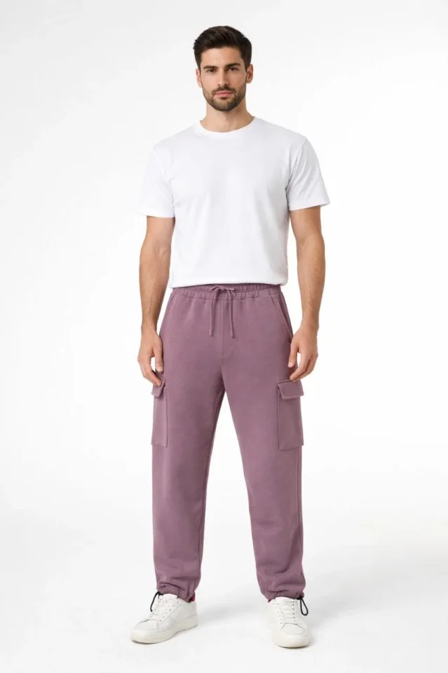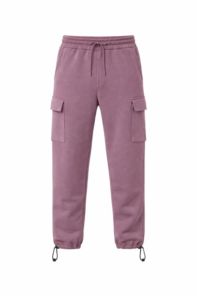 Erkek Rahat Kullanım Gül Kurusu Baggy Üç İplik Kargo Cepli Eşofman Ayarlanabilir Paça Beli İpli Pantolon