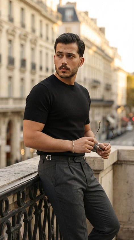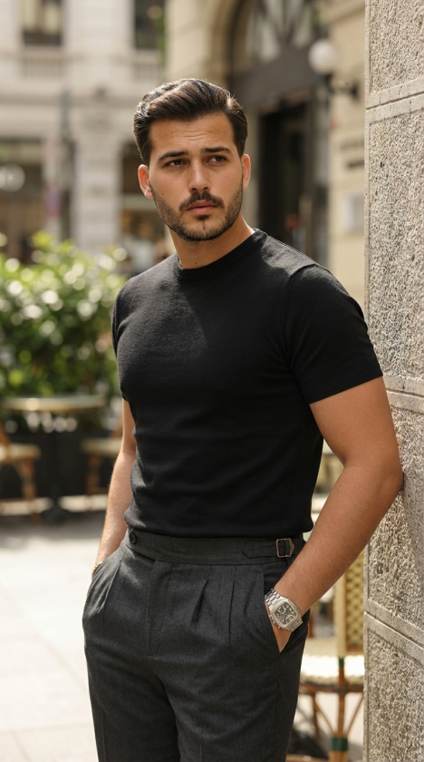 Erkek Basic Bisiklet Yaka Kısa Kollu Triko Tişört – %100 Pamuk Akrilik