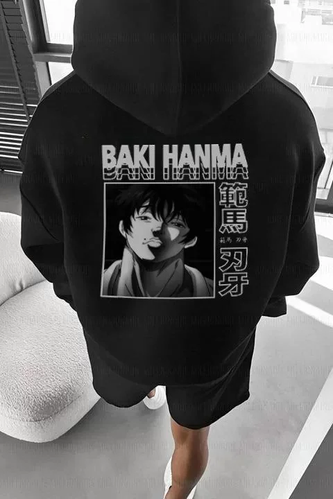 Grafik Baskılı Erkek Günlük Stil Siyah Kordon İpli Kapüşonlu Sweatshirt