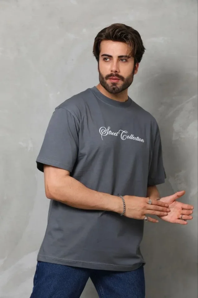 Erkek Baskılı T-Shirt Kısa Kol Bisiklet Yaka Regular Fit Rahat Kalıp Günlük Tişört – Füme
