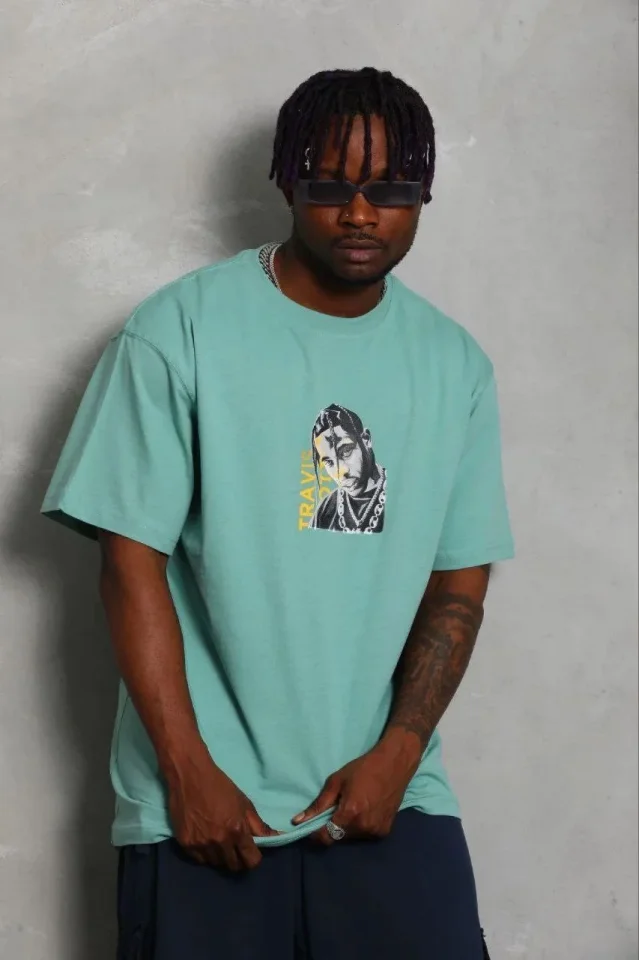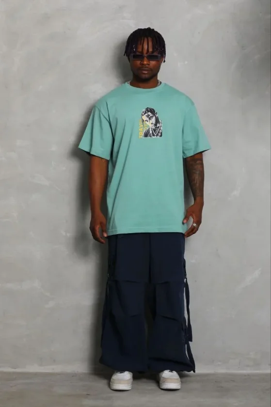 Baskılı Erkek Mint Yeşili Kısa Kol Bisiklet Yaka Regular Fit Rahat Kalıp Günlük Tişört