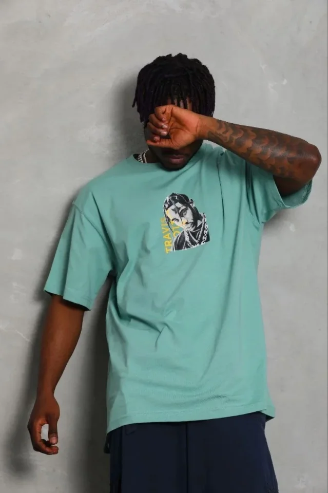Erkek Baskılı T-Shirt Kısa Kol Bisiklet Yaka Regular Fit Rahat Kalıp Günlük Tişört – Mint Yeşili