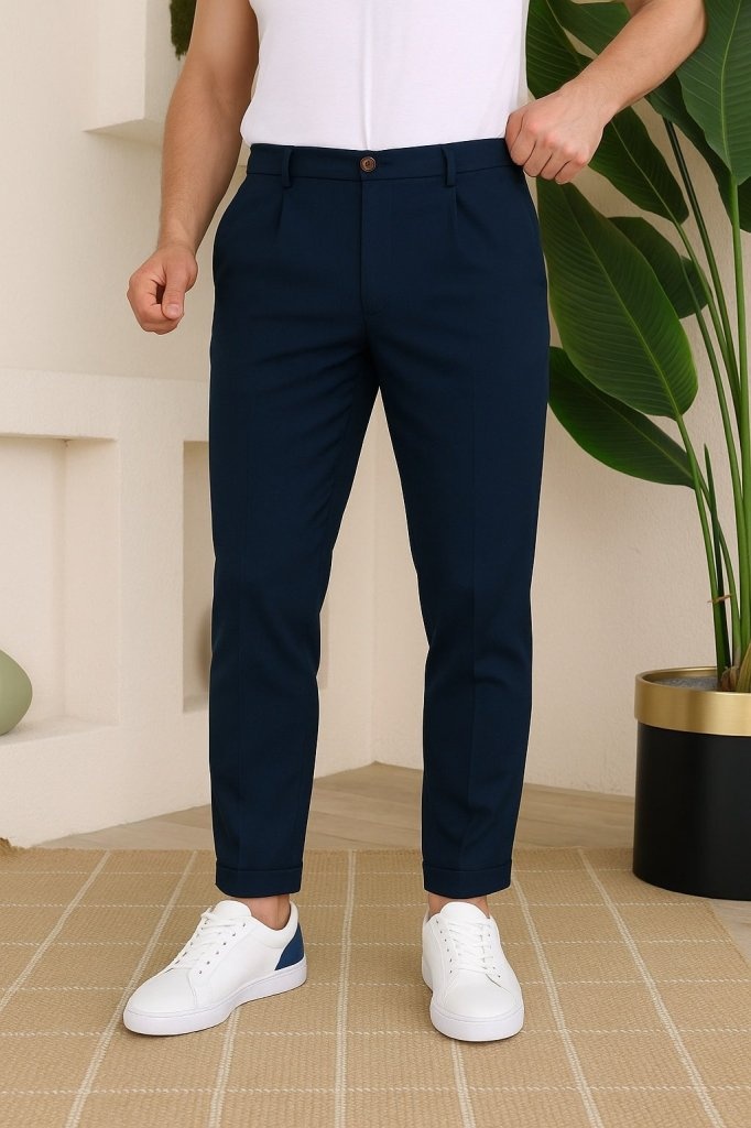 Erkek Belden Düğmeli Cepli Dokuma Pantolon