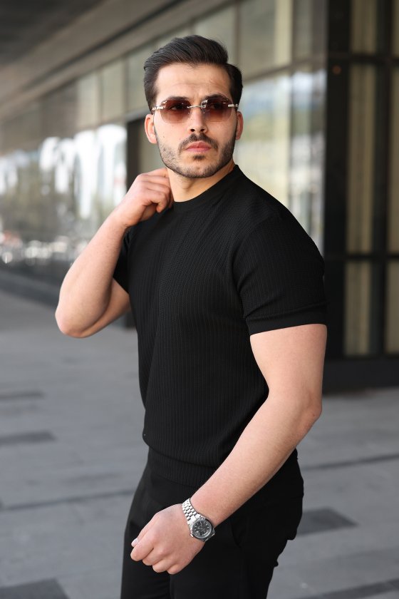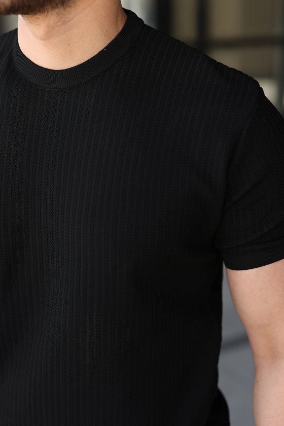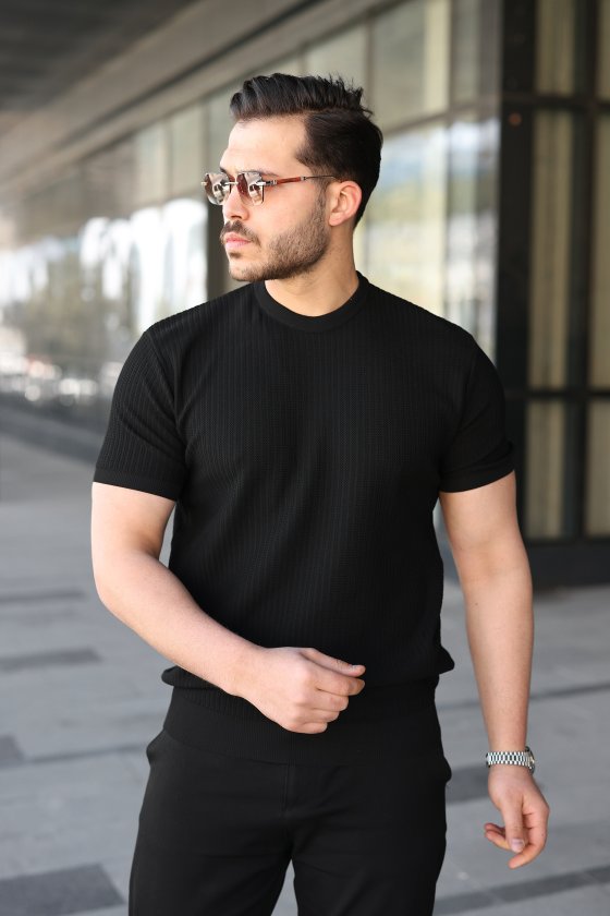 Erkek Bisiklet Yaka Petek Dokulu Kısa Kollu Triko Tişört