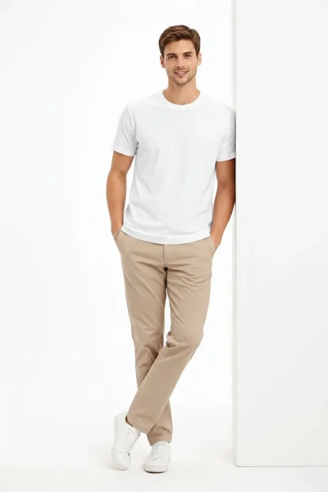 Erkek Bisiklet Yaka Tişört Regular Kalıp Basic Pamuklu Günlük Kullanım T-shirt – Beyaz