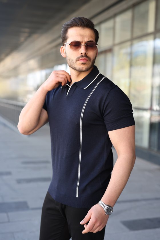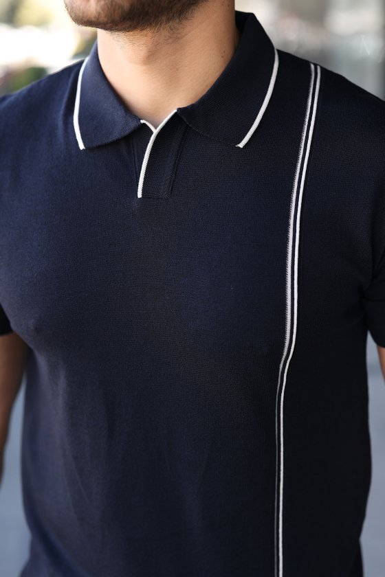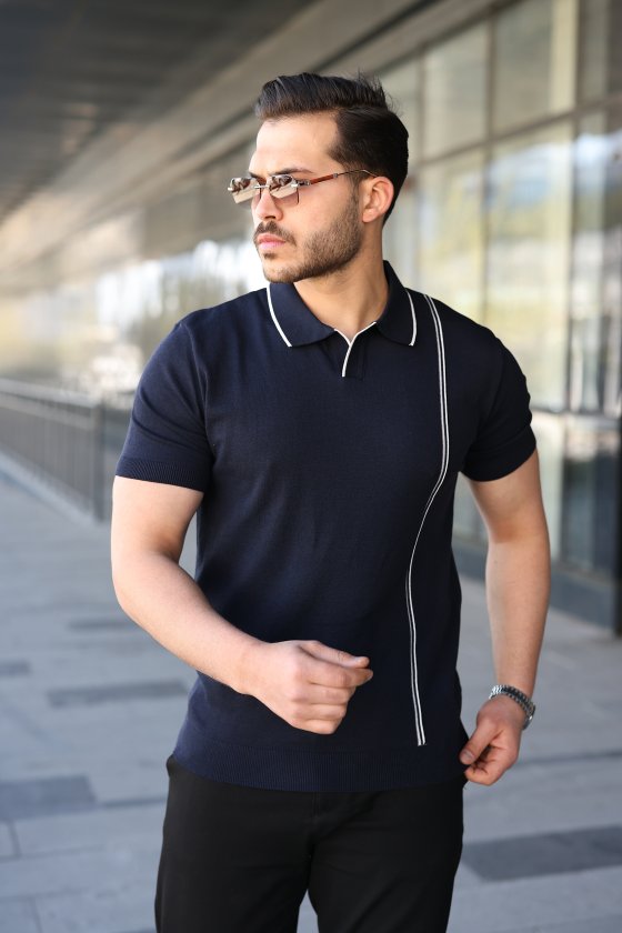 Erkek Çizgi Detaylı Yakalı Triko Tişört